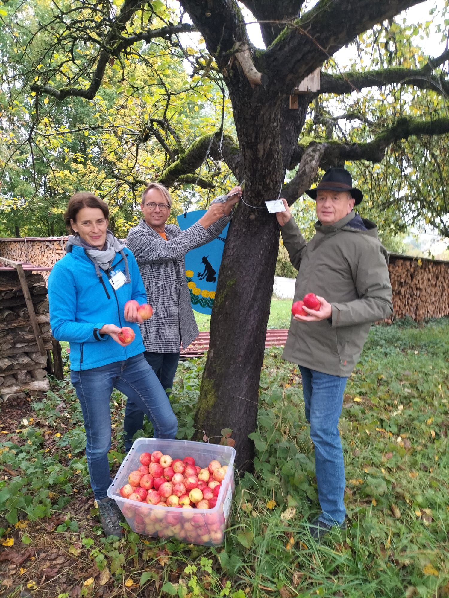 Die Hilterhaus-Stiftung ermöglicht mit einer Spende über 1000,00 € das Projekt des Obst- und Gartenbauvereins Schalkhausen e.V. zur Beschilderung von Obstbäumen. Durch den Pomologen Wolfgang Subal konnten viele Apfel- und Birnbäume bestimmt werden. Jetzt sind auch die Schilder fertig, die an den Bäumen befestigt werden und die Früchte des Baumes charakterisieren. Nun fand die Übergabe der Schilder statt in Anwesenheit von Oberbürgermeister Thomas Deffner, Axel Hilterhaus, Alexander Müller…